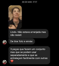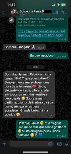 Hello! I'm here with my magnificent piece, both bold and delicate at the same time. I loved it! ♥️ Simply wonderful... I'm in love with my purchase. Congratulations on the amazing work!